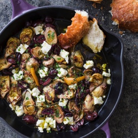 Warm Marinated Artichoke Hearts with Olives and Feta